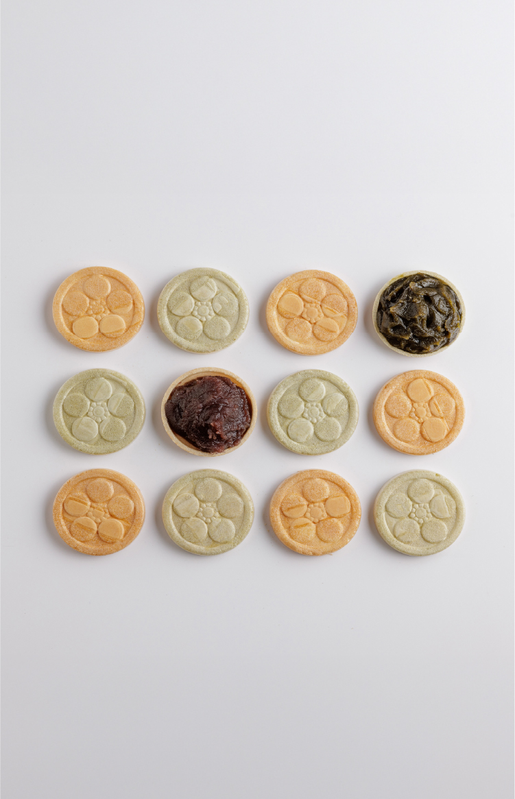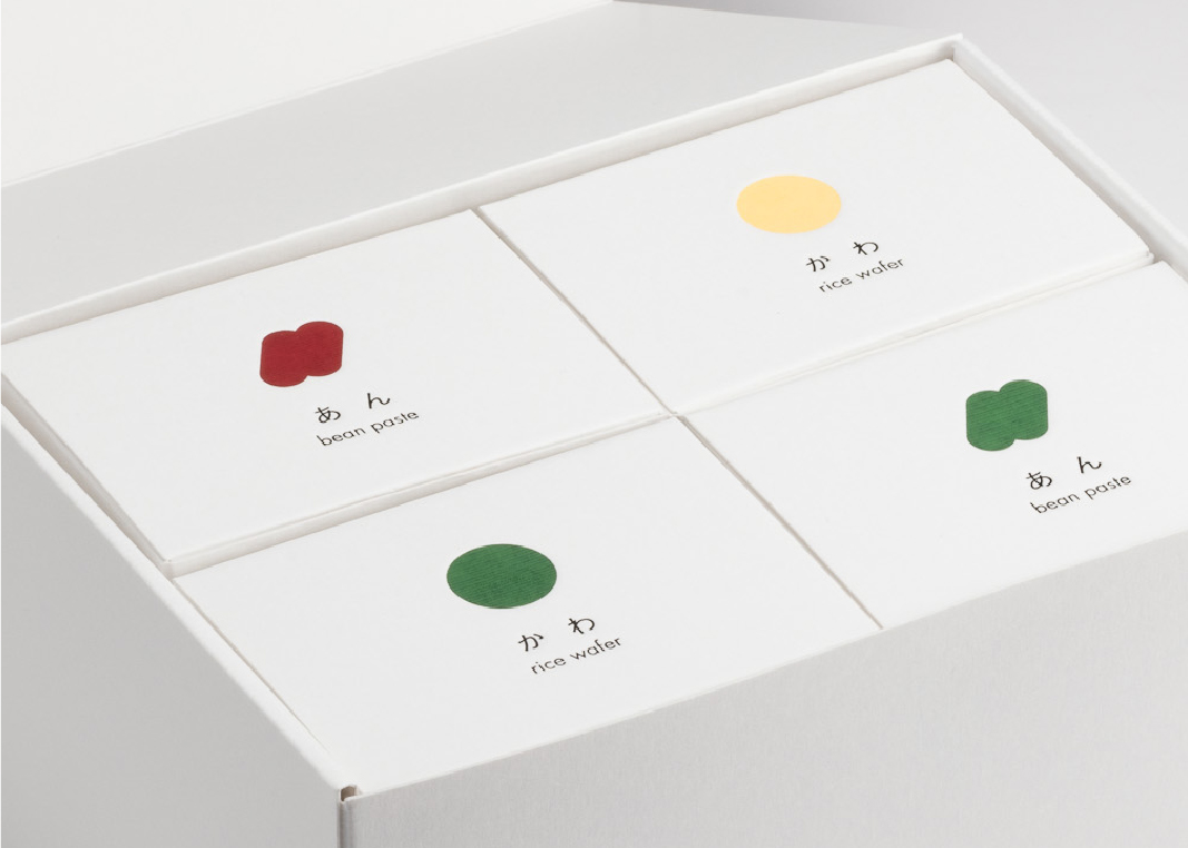 内箱には「あん」と「かわ」をかたどったアイコンをあしらい、
