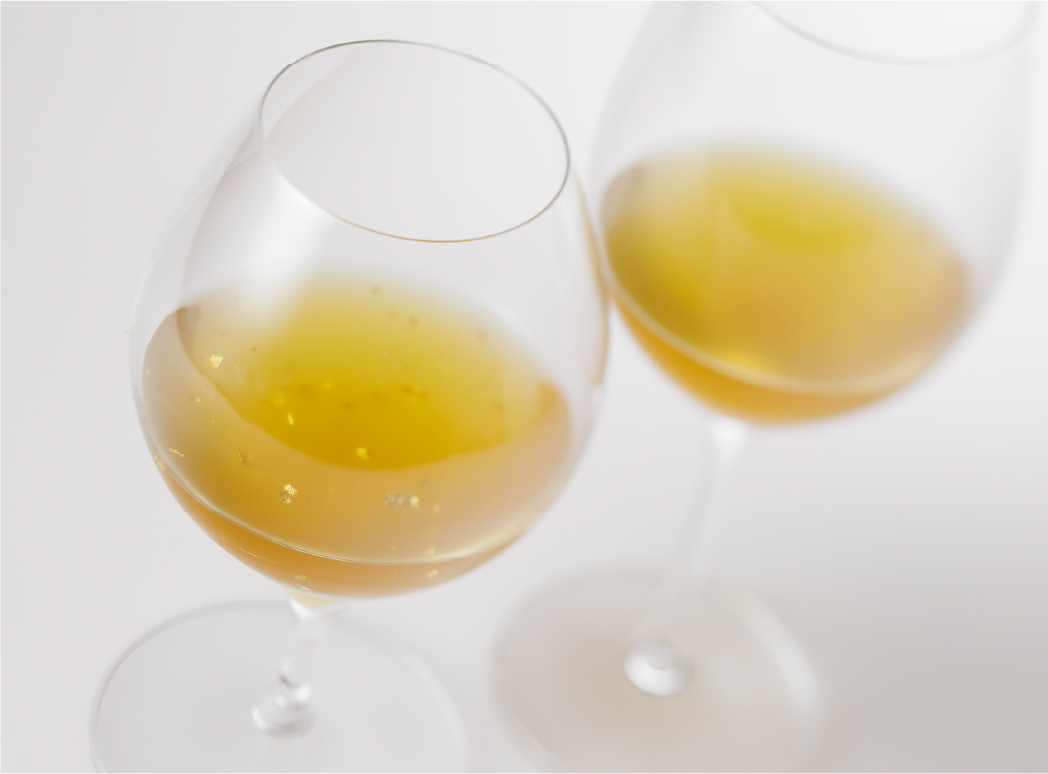 グラスに注げば、金箔が華やかに舞い、